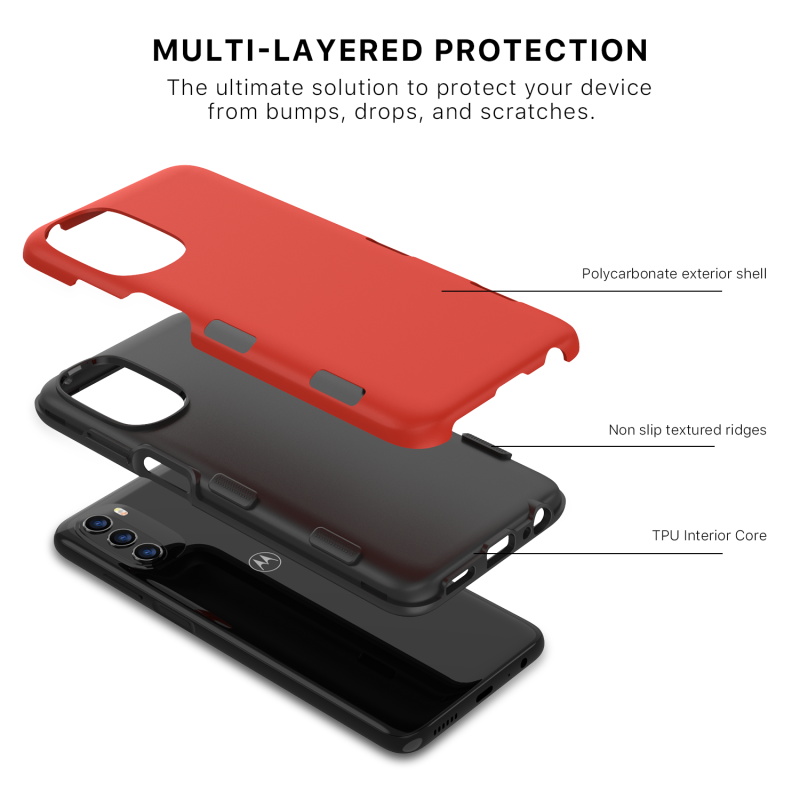 Your customers can slim down from bulky phone cases and toughen up their Motorola Moto G 5G (2022) with the Tuff Subs Series Case from MyBat Pro. It is available in attractive packaging that makes it stand out on the shelf and shows off the product beautifully, making it an ideal addition to your inventory. Introducing the Tuff Subs Case, a new, thinner than ever phone case that provides true ruggedness to your customer's Moto G 5G (2022)! It's tougher than it looks and takes advantage of everything that makes the classic Tuff Series so popular! Dual-layered protection, a rugged red polycarbonate outer shell, and a rubberized silicone inner shell will provide maximum protection from accidental drops, bumps, and scratches to your customers' Moto G 5G (2022). Your customers can access all buttons and ports with ease as a result of raised bezel edges and texturized ergonomic ridged edges. MyBat Pro offers an extended lifetime warranty for the Tuff Subs Series Case For Moto G 5G (2022), ensuring the best quality, performance, and customer satisfaction. Features: Dual-Layered Superior Durability Raised Bezel Edges Easy Access: Ports & Buttons Ultra-Slim, Lightweight & Minimal Design Quick Installation & Removal Lifetime Warranty