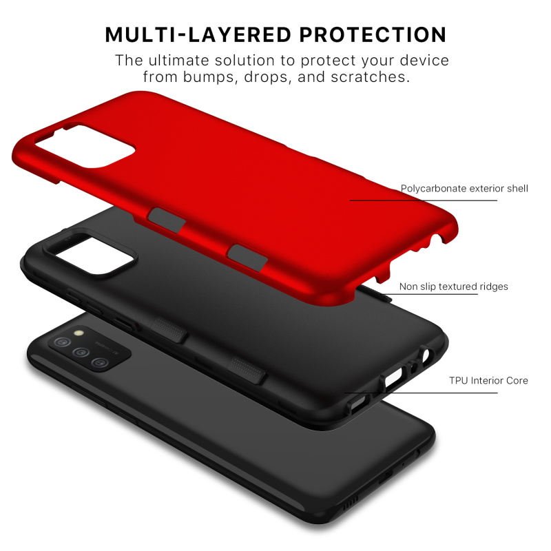 Your customers can slim down from bulky phone cases and toughen up their Samsung Galaxy A02s with the Tuff Subs Series Case from MyBat Pro. It is available in attractive packaging that makes it stand out on the shelf and shows off the product beautifully, making it an ideal addition to your inventory. Introducing the Tuff Subs Case, a new, thinner than ever phone case that provides true ruggedness to your customer's Galaxy A02s! It's tougher than it looks and takes advantage of everything that makes the classic Tuff Series so popular! Dual-layered protection, a rugged red polycarbonate outer shell, and a rubberized silicone inner shell will provide maximum protection from accidental drops, bumps, and scratches to your customers' Galaxy A02s. Your customers can access all buttons and ports with ease as a result of raised bezel edges and texturized ergonomic ridged edges. MyBat Pro offers an extended lifetime warranty for the Tuff Subs Series Case For Galaxy A02s, ensuring the best quality, performance, and customer satisfaction. Features: Dual-Layered Superior Durability Raised Bezel Edges Easy Access: Ports & Buttons Ultra-Slim, Lightweight & Minimal Design Quick Installation & Removal Lifetime Warranty