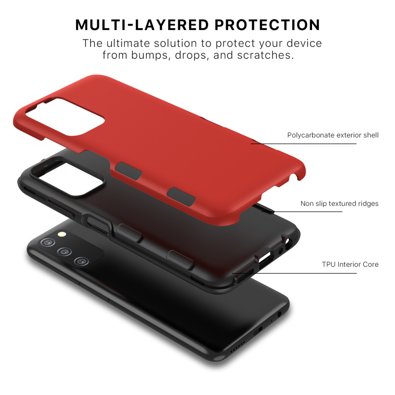 Your customers can slim down from bulky phone cases and toughen up their Samsung Galaxy A03s or Galaxy A037U with the Tuff Subs Series Case from MyBat Pro. It is available in attractive packaging that makes it stand out on the shelf and shows off the product beautifully, making it an ideal addition to your inventory. Introducing the Tuff Subs Case, a new, thinner than ever phone case that provides true ruggedness to your customer's A037U or Galaxy A03s! It's tougher than it looks and takes advantage of everything that makes the classic Tuff Series so popular! Dual-layered protection, a rugged red polycarbonate outer shell, and a rubberized silicone inner shell will provide maximum protection from accidental drops, bumps, and scratches to your customers' A037U or Galaxy A03s. Your customers can access all buttons and ports with ease as a result of raised bezel edges and texturized ergonomic ridged edges. MyBat Pro offers an extended lifetime warranty for the Tuff Subs Series Case For A037U or Galaxy A03s, ensuring the best quality, performance, and customer satisfaction. Features: Dual-Layered Superior Durability Raised Bezel Edges Easy Access: Ports & Buttons Ultra-Slim, Lightweight & Minimal Design Quick Installation & Removal Lifetime Warranty