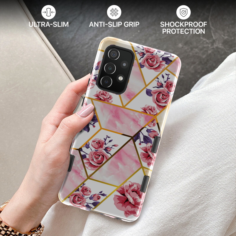 Your customers can slim down from bulky phone cases and toughen up their Samsung Galaxy A52 5G with the Tuff Subs Series Case from MyBat Pro. It is available in attractive packaging that makes it stand out on the shelf and shows off the product beautifully, making it an ideal addition to your inventory. Introducing the Tuff Subs Case, a new, thinner than ever phone case that provides true ruggedness to your customer's Galaxy A52 5G! It's tougher than it looks and takes advantage of everything that makes the classic Tuff Series so popular! Dual-layered protection, a rugged marble roses style polycarbonate outer shell, and a rubberized silicone inner shell will provide maximum protection from accidental drops, bumps, and scratches to your customers' Galaxy A52 5G. Your customers can access all buttons and ports with ease as a result of raised bezel edges and texturized ergonomic ridged edges. MyBat Pro offers an extended lifetime warranty for the Tuff Subs Series Case For Galaxy A52 5G, ensuring the best quality, performance, and customer satisfaction. Features: Dual-Layered Superior Durability Raised Bezel Edges Easy Access: Ports & Buttons Ultra-Slim, Lightweight & Minimal Design Quick Installation & Removal Lifetime Warranty
