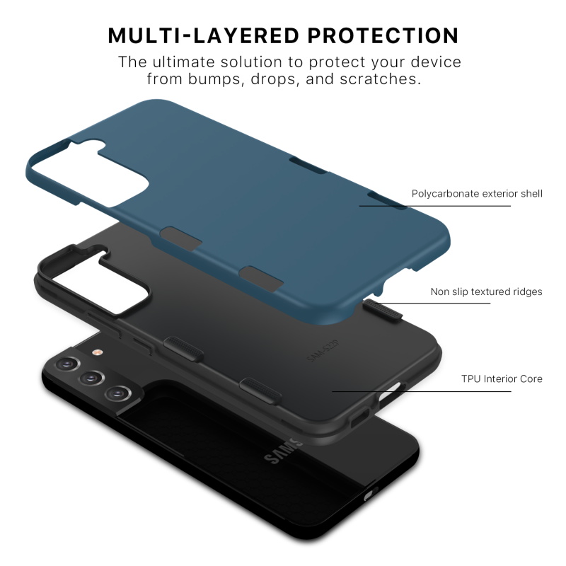 Your customers can slim down from bulky phone cases and toughen up their Samsung Galaxy S22 Plus with the Tuff Subs Series Case from MyBat Pro. It is available in attractive packaging that makes it stand out on the shelf and shows off the product beautifully, making it an ideal addition to your inventory. Introducing the Tuff Subs Case, a new, thinner than ever phone case that provides true ruggedness to your customer's Galaxy S22 Plus! It's tougher than it looks and takes advantage of everything that makes the classic Tuff Series so popular! Dual-layered protection, a rugged ink blue polycarbonate outer shell, and a rubberized silicone inner shell will provide maximum protection from accidental drops, bumps, and scratches to your customers' Galaxy S22 Plus. Your customers can access all buttons and ports with ease as a result of raised bezel edges and texturized ergonomic ridged edges. MyBat Pro offers an extended lifetime warranty for the Tuff Subs Series Case For Galaxy S22 Plus, ensuring the best quality, performance, and customer satisfaction. Features: Dual-Layered Superior Durability Raised Bezel Edges Easy Access: Ports & Buttons Ultra-Slim, Lightweight & Minimal Design Quick Installation & Removal Lifetime Warranty