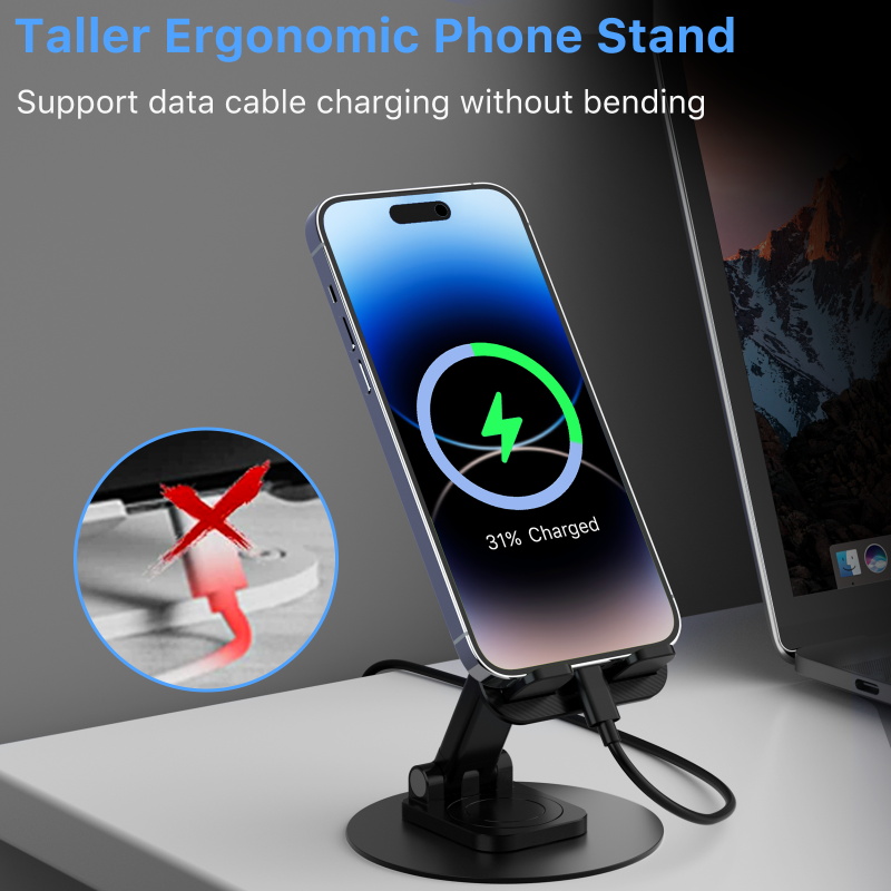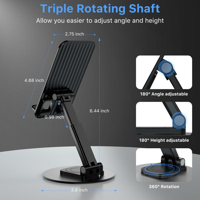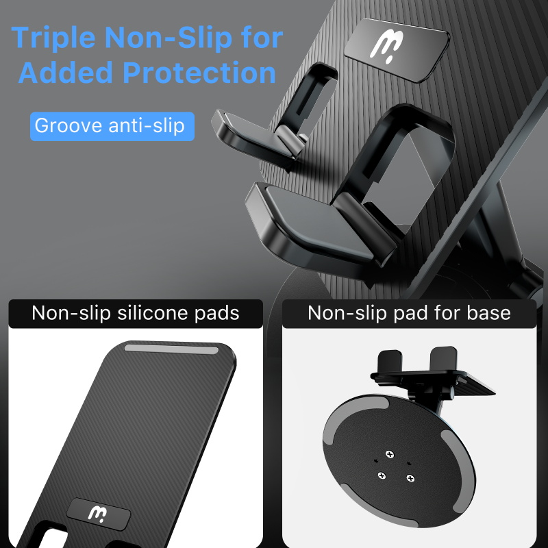 Provide your customers with the most versatile hands-free view of their phones or tablets with the MyBat Pro Phone Stand. It is available in attractive packaging that makes it stand out on the shelf and shows off the product beautifully, making it an ideal addition to your inventory. By using the MyBat Pro Phone Stand, your customers' reading, videos, and games will be at the optimal ergonomic viewing height to alleviate back and neck strain. In portrait or landscape mode, the stand will accommodate screens ranging from 4" to 12.95", ensuring the safety of your customers' devices. Three adjustable hinges, a 360° rotatable base, a180° base hinge, and a 180° mount hinge enable your customer's device to be raised and lowered at the ideal height and angle. Nonslip silicone base pads and a weighted base offer superior stability and protection from scratches drops, and falls. Staying fully charged is easier than ever with charging port access at any angle! Extremely portable, the mount folds for travel and fits into any bag or backpack. MyBat Pro offers a limited one-year warranty for the Phone Stand, ensuring the best quality, performance, and customer satisfaction. Features: Fits All Phones & Tablets 4” to 12.9” Ergonomic Design Multiple Viewing Angles Three-Hinge Adjustments Portrait or Landscape Viewing Easy Installation & Removal Charging Port Access Premium Aluminum Construction Weighted Metal Base Non-Slip SiliconePads Travel-Friendly Foldable Design 1-Year Warranty