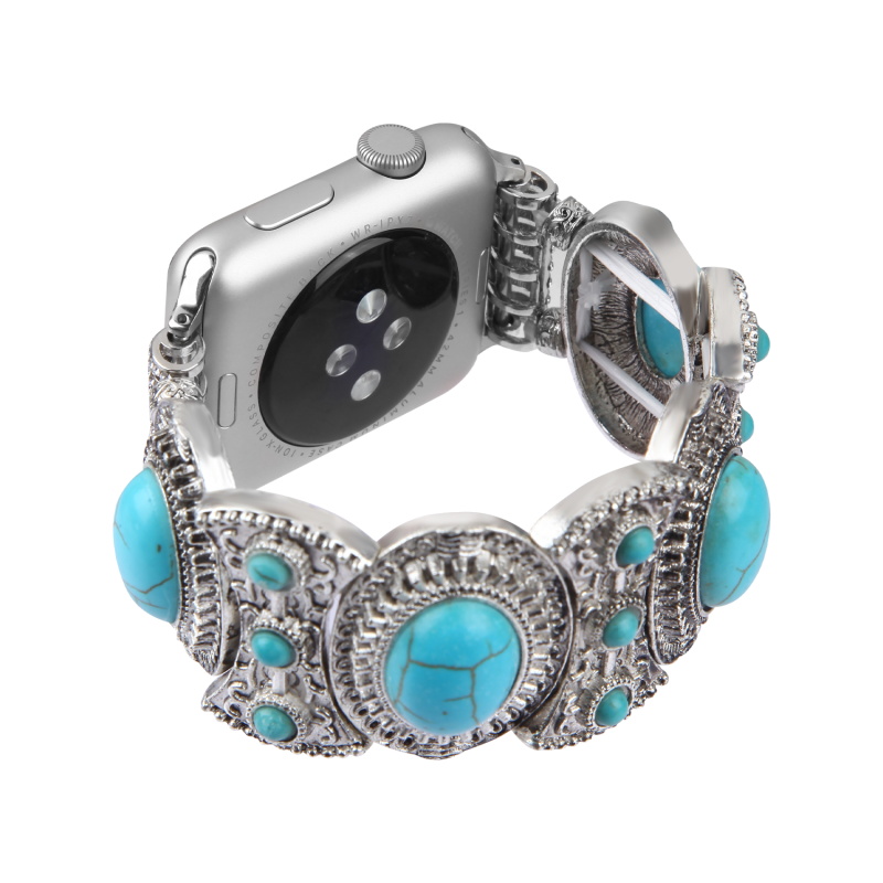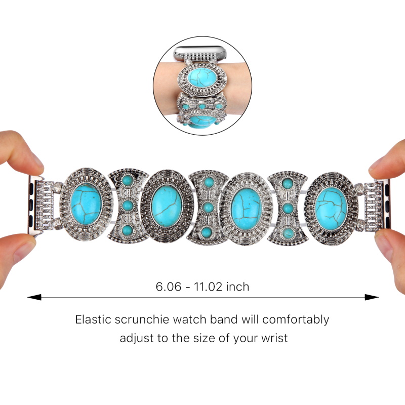 Your customer's wrist will look like a true work of fine art as the regal agate pearl and silver links of the Pearl Watchband from MyBat Pro will transform their Apple Watch. It is available in attractive packaging that makes it stand out on the shelf and shows off the product beautifully, making it an ideal addition to your inventory. Your customers' Apple Watch will be an eye-catching piece with the Turquoise Watchband as it fits all Apple Watch models, including the new Apple Watch Series 7. The stainless steel connectors make a quick and easy installation for your customers. The comfortable elastic band fits their wrist like a designer bracelet, so they can flaunt their glamorous style wherever they go. MyBat Pro offers an extended lifetime warranty for the Turquoise Apple Watchband - 38mm | 40mm | 41mm, ensuring the best quality, performance, and customer satisfaction. Features: For Apple Watch Series 1/2/3/4/5/6/SE/7 Elegant Agate Pearl Beads Elastic Bracelet Design Easy Slide On/Off Suitable for All Wrist Sizes Stainless Steel Connectors Quick Installation & Removal Comfortable, Lightweight Design Lifetime Warranty