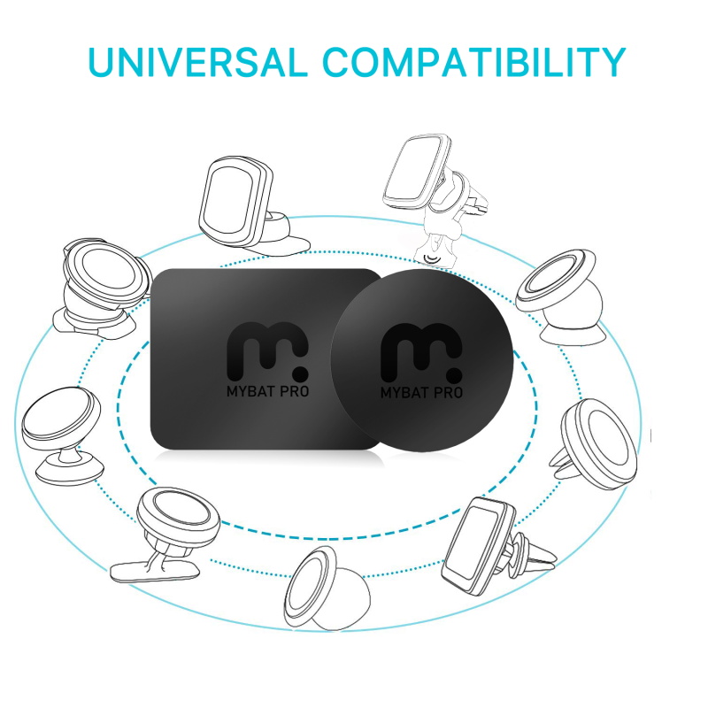 MyBat Pro - Magnetic Plates For Magnetic Mount (2PK) The Universal Magnetic Plates from MyBat Pro allows your customers to magnetically mount their devices, allowing you to offer the safest and most secure mounting solution. It is available in attractive packaging that makes it stand out on the shelf and shows off the product beautifully, making it an ideal addition to your inventory. The plates lock onto any magnetic mount with a powerful attachment, especially MyBat Pro Universal Magnetic Mounts! This convenient 2-pack makes any two devices magnetic with an included round plate for your customer’s phone or phone case and a square plate for larger devices. Customers can stick the plates directly to their devices, phone cases, or under their phone case using the powerful 3M adhesive backing for a fast and easy installation. The ultra-thin plates will not add bulk to your customers' devices or prevent them from using the screen or ports. Using the included clear protective film ensures a clean and quick removal process. MyBat Pro offers an extended lifetime warranty for the Magnetic Plates For Magnetic Mount (2PK), ensuring the best quality, performance, and customer satisfaction. Features: Designed for MyBat Pro Universal Magnetic Mounts Universal Device Compatibility Magnetically Mount Any Device Includes 1 Round & 1 Square Plate Powerful 3M Adhesive Easy-Removal Protective Film Compatible With All Magnetic Mounts Lifetime Warranty