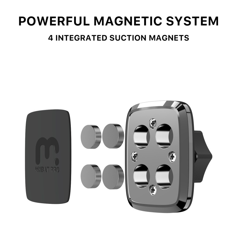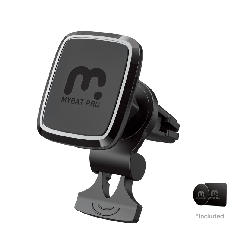Help your customers merge into a new lane of hands-free convenience as they keep their phones at the perfect glanceable level from their car's air vent. It is available in attractive packaging that makes it stand out on the shelf and shows off the product beautifully, making it an ideal addition to your inventory. The Universal Magnetic Vent Mount fits most vents or grilles, regardless of their shape or thickness, and the vent stabilizer provides additional support for heavier, larger phones! Customers can easily view their phone in portrait or landscape with the fully rotating swivel ball head. Customers will have a clear driving view and unobstructed airflow from any position or angle! The two included metal plates allow customers to attach them to their phone or case and then place their phone near the mount to lock it in place magnetically! The magnetic force will keep their phone secure and within reach during bumpy or rocky rides! MyBat Pro offers an extended lifetime warranty for the Universal Magnetic Vent Mount, ensuring the best quality, performance, and customer satisfaction. Features: Hands-Free Mounting Works on Air Vents & Grilles Universal Phone Compatibility One-Handed Operation Safe & Secure Magnetic Alignment Quick Installation & Removal Universal Air Vent Grips Built-In Vent Stabilizer 360° Swivel Ball Rotation Portrait or Landscape Viewing Includes 2 Adhesive Metal Plates Lifetime Warranty Includes: Magnetic Head Vent Mount 1 Square Adhesive Metal Plate 1 Round Adhesive Metal Plate