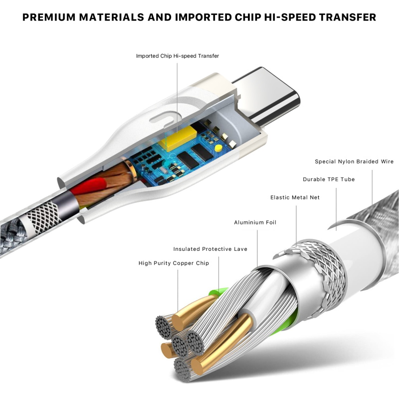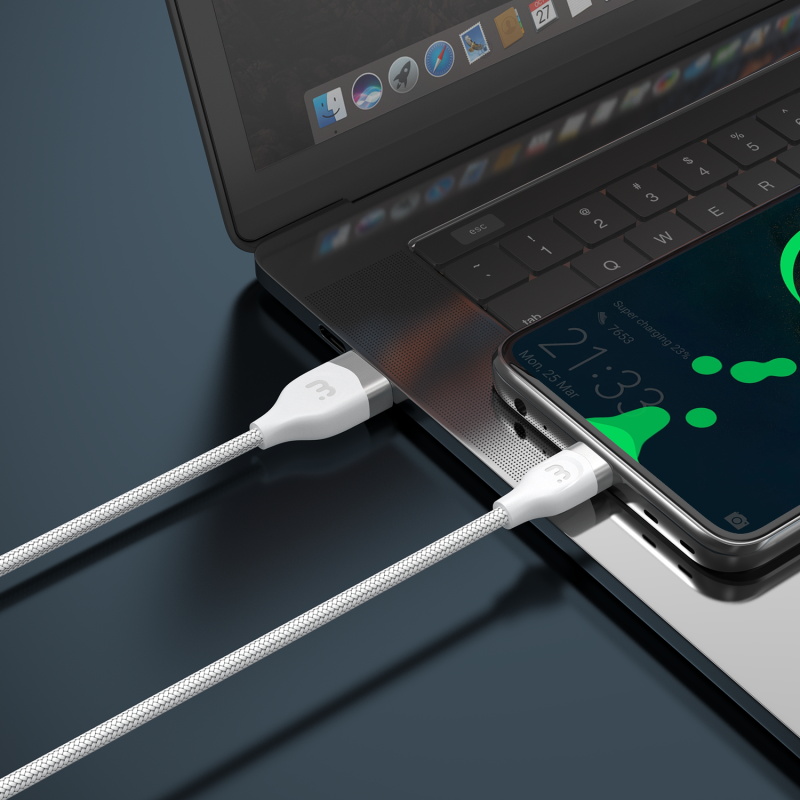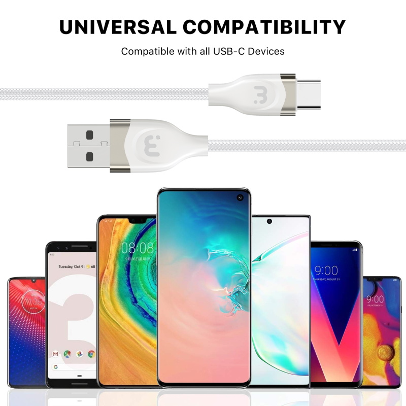 MyBat Pro USB-A to USB-C Braided Cable (L=3 FT) - White