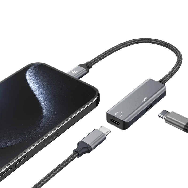 MyBat Pro USB-C to Dual USB-C Splitter(Audio and 60W PD Charger Adapter) - Black