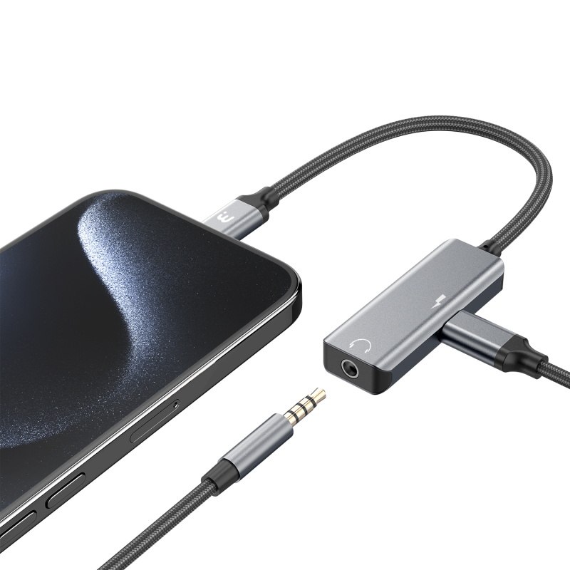 MyBat Pro USB-C to USB-C & 3.5mm Splitter(Audio and 60W PD Charger Adapter) - Black
