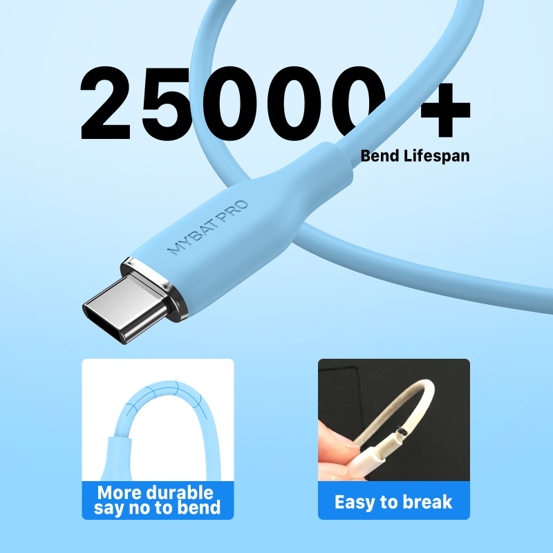 MyBat Pro USB-C to USB-C Liquid Silicone Cable (L=3 FT) - Blue