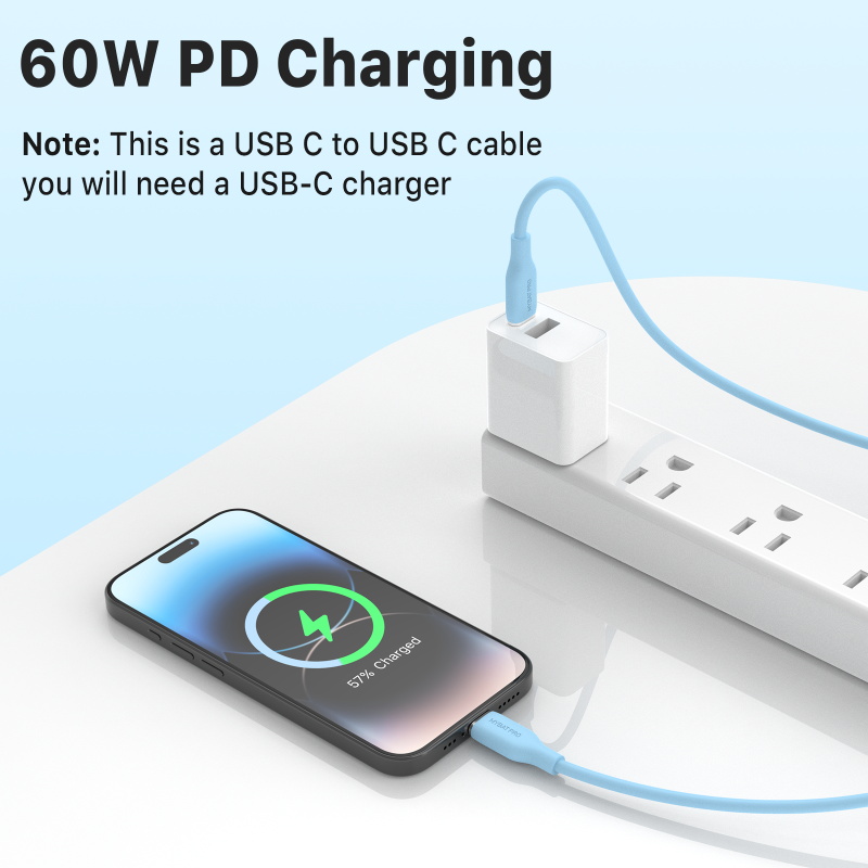 Upgrade your customers' everyday cables with a USB-C to USB-C Liquid Silicone Cable from MyBat Pro provides the fastest charging speeds and data transfer rates to their Android phones, tablets, earbuds, etc. It is available in attractive packaging that makes it stand out on the shelf and shows off the product beautifully, making it an ideal addition to your inventory. The USB-C to USB-C Liquid Silicone Cable provides the fastest charging and data transfer rates for your customer’s devices! They can charge quickly at speeds of up to 3A and transfer large files at speeds of 480Mbps when connected to a computer so that you can transfer larger files such as photos and videos in seconds! Crafted from soft and skin friendly materials, the USB-C to USB-C Liquid Silicone Cable boasts an incredible bend lifespan that outlasts the average charging cable. Your customers will get maximum freedom and mobility as they charge with the perfect 3.3ft/1m length that easily reaches from a wall outlet to a couch or bed and easily runs from a center console to a passenger. MyBat Pro offers a lifetime warranty for the USB-C to USB-C Liquid Silicone Cable, ensuring the best quality, performance, and customer satisfaction. Features: Made for USB-C Devices USB-C to USB-C Cable Supports Up to 60W Power Delivery High-Speed 480 Mbps Data Transfer Flexible Liquid Silicone Unrivaled Durability Incredible Bend Lifetime Extended 3.3ft Length Lifetime Warranty