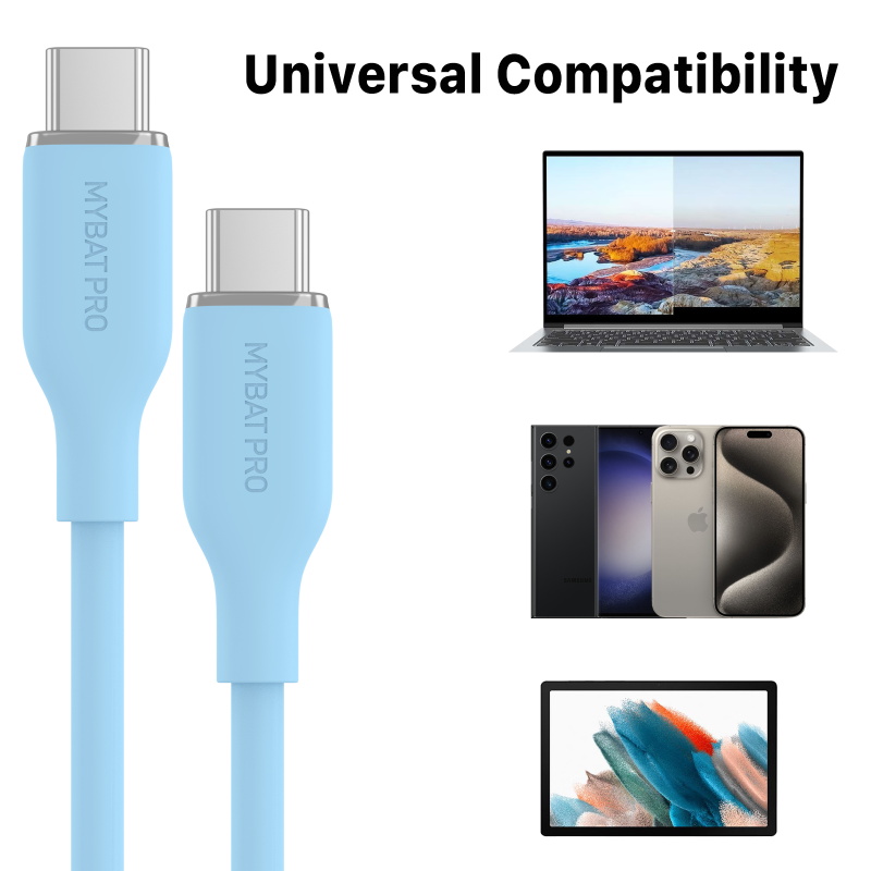 Upgrade your customers' everyday cables with a USB-C to USB-C Liquid Silicone Cable from MyBat Pro provides the fastest charging speeds and data transfer rates to their Android phones, tablets, earbuds, etc. It is available in attractive packaging that makes it stand out on the shelf and shows off the product beautifully, making it an ideal addition to your inventory. The USB-C to USB-C Liquid Silicone Cable provides the fastest charging and data transfer rates for your customer’s devices! They can charge quickly at speeds of up to 3A and transfer large files at speeds of 480Mbps when connected to a computer so that you can transfer larger files such as photos and videos in seconds! Crafted from soft and skin friendly materials, the USB-C to USB-C Liquid Silicone Cable boasts an incredible bend lifespan that outlasts the average charging cable. Your customers will get maximum freedom and mobility as they charge with the perfect 6ft/1.8m length that easily reaches from a wall outlet to a couch or bed and easily runs from a center console to a passenger. MyBat Pro offers a lifetime warranty for the USB-C to USB-C Liquid Silicone Cable, ensuring the best quality, performance, and customer satisfaction. Features: Made for USB-C Devices USB-C to USB-C Cable Supports Up to 60W Power Delivery High-Speed 480 Mbps Data Transfer Flexible Liquid Silicone Unrivaled Durability Incredible Bend Lifetime Extended 6ft Length Lifetime Warranty