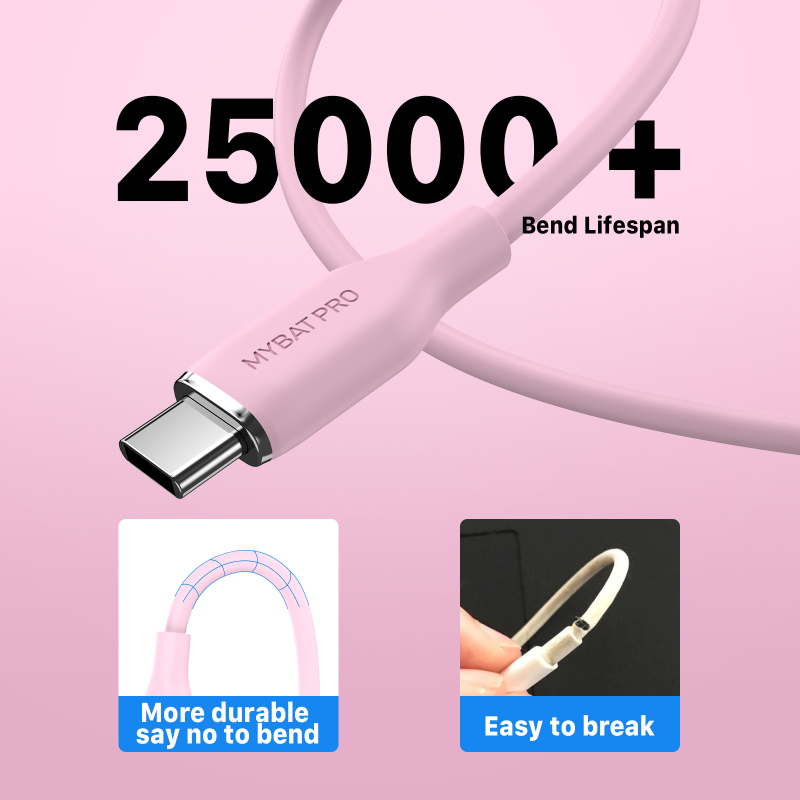 MyBat Pro USB-C to USB-C Liquid Silicone Cable (L=6 FT) - Pink