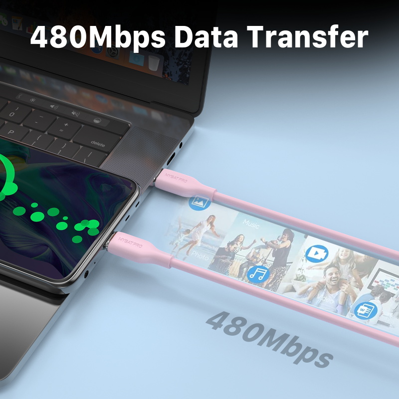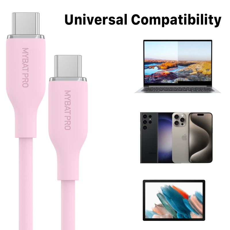 Upgrade your customers' everyday cables with a USB-C to USB-C Liquid Silicone Cable from MyBat Pro provides the fastest charging speeds and data transfer rates to their Android phones, tablets, earbuds, etc. It is available in attractive packaging that makes it stand out on the shelf and shows off the product beautifully, making it an ideal addition to your inventory. The USB-C to USB-C Liquid Silicone Cable provides the fastest charging and data transfer rates for your customer’s devices! They can charge quickly at speeds of up to 3A and transfer large files at speeds of 480Mbps when connected to a computer so that you can transfer larger files such as photos and videos in seconds! Crafted from soft and skin friendly materials, the USB-C to USB-C Liquid Silicone Cable boasts an incredible bend lifespan that outlasts the average charging cable. Your customers will get maximum freedom and mobility as they charge with the perfect 6ft/1.8m length that easily reaches from a wall outlet to a couch or bed and easily runs from a center console to a passenger. MyBat Pro offers a lifetime warranty for the USB-C to USB-C Liquid Silicone Cable, ensuring the best quality, performance, and customer satisfaction. Features: Made for USB-C Devices USB-C to USB-C Cable Supports Up to 60W Power Delivery High-Speed 480 Mbps Data Transfer Flexible Liquid Silicone Unrivaled Durability Incredible Bend Lifetime Extended 6ft Length Lifetime Warranty