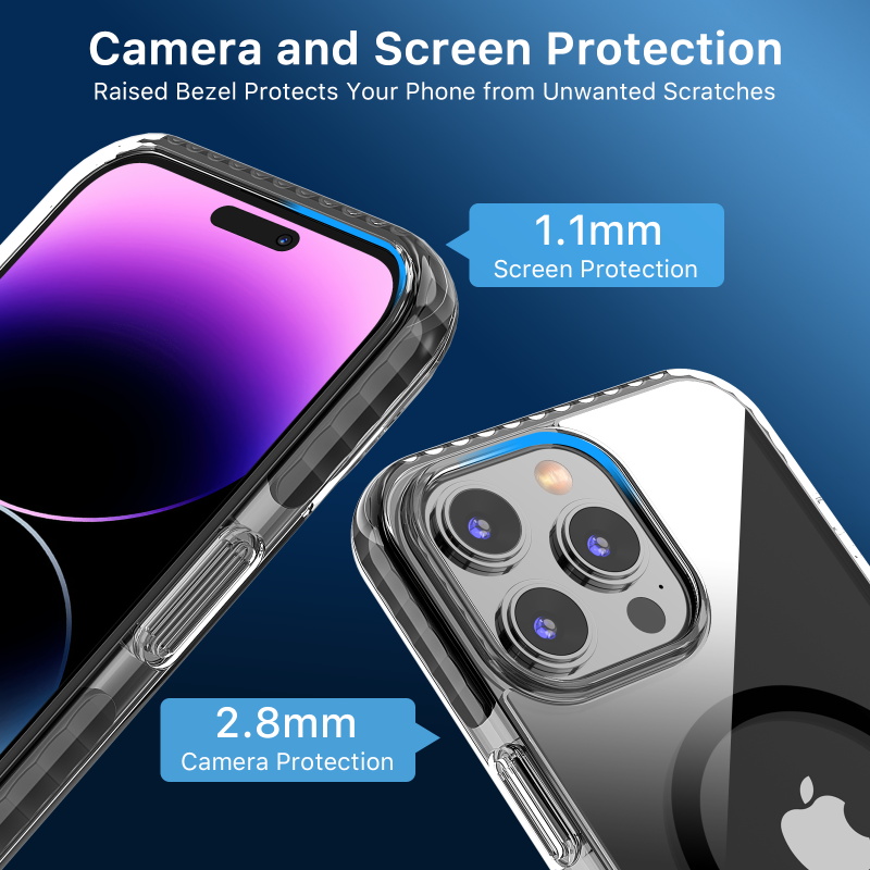Vivid Series MagSafe Case for iPhone 14 Pro Max (6.7) amplifies clarity and vibrance and all around protection. This crystal-clear case, adorned with meticulously designed black textured non-slip bumpers, seamlessly combines style with practicality. The +AttachMe ring in silver facilitates rapid attachment to MagSafe chargers and mounts, ensuring effortless functionality. Certified military-grade protection envelops your customer’s iPhone 14 Pro Max (6.7), guarding it against scratches, bumps, and drops while allowing its vivid allure to shine through. Elevate your product offering with the Vivid Series MagSafe Case, where protection meets sheer elegance. MyBat Pro proudly supports the Vivid Series MagSafe Case with a limited lifetime warranty, underscoring our commitment to the highest quality, performance, and customer satisfaction. Features: MagSafe Compatible +AttachMe Magnetic Ring Alignment Military-Grade Drop Protection Shock & Impact Resistant Raised Bezel Edges & Camera Ring Crystal-Clear Design Textured Non-Slip Bumpers Easy Access: Ports & Buttons Quick Installation & Removal Lifetime Warranty