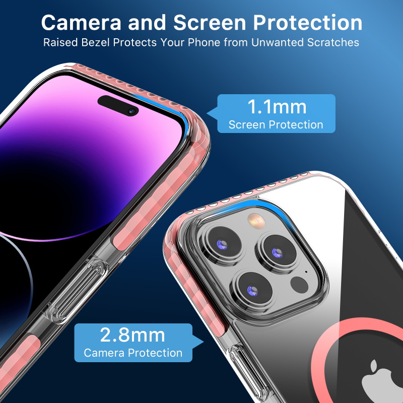 Vivid Series MagSafe Case for iPhone 14 Pro Max (6.7) amplifies clarity and vibrance and all around protection. This crystal-clear case, adorned with meticulously designed black textured non-slip bumpers, seamlessly combines style with practicality. The +AttachMe ring in silver facilitates rapid attachment to MagSafe chargers and mounts, ensuring effortless functionality. Certified military-grade protection envelops your customer’s iPhone 14 Pro Max (6.7), guarding it against scratches, bumps, and drops while allowing its vivid allure to shine through. Elevate your product offering with the Vivid Series MagSafe Case, where protection meets sheer elegance. MyBat Pro proudly supports the Vivid Series MagSafe Case with a limited lifetime warranty, underscoring our commitment to the highest quality, performance, and customer satisfaction. Features: MagSafe Compatible +AttachMe Magnetic Ring Alignment Military-Grade Drop Protection Shock & Impact Resistant Raised Bezel Edges & Camera Ring Crystal-Clear Design Textured Non-Slip Bumpers Easy Access: Ports & Buttons Quick Installation & Removal Lifetime Warranty