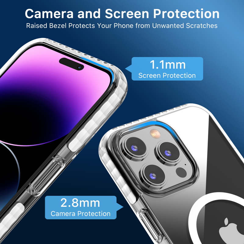 Vivid Series MagSafe Case for iPhone 14 Pro Max (6.7) amplifies clarity and vibrance and all around protection. This crystal-clear case, adorned with meticulously designed black textured non-slip bumpers, seamlessly combines style with practicality. The +AttachMe ring in silver facilitates rapid attachment to MagSafe chargers and mounts, ensuring effortless functionality. Certified military-grade protection envelops your customer’s iPhone 14 Pro Max (6.7), guarding it against scratches, bumps, and drops while allowing its vivid allure to shine through. Elevate your product offering with the Vivid Series MagSafe Case, where protection meets sheer elegance. MyBat Pro proudly supports the Vivid Series MagSafe Case with a limited lifetime warranty, underscoring our commitment to the highest quality, performance, and customer satisfaction. Features: MagSafe Compatible +AttachMe Magnetic Ring Alignment Military-Grade Drop Protection Shock & Impact Resistant Raised Bezel Edges & Camera Ring Crystal-Clear Design Textured Non-Slip Bumpers Easy Access: Ports & Buttons Quick Installation & Removal Lifetime Warranty