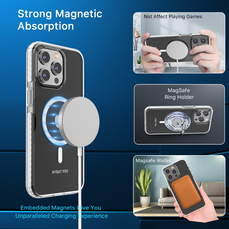 Vivid Series MagSafe Case for iPhone 15 Pro (6.1) amplifies clarity and vibrance and all around protection. This crystal-clear case, adorned with meticulously designed black textured non-slip bumpers, seamlessly combines style with practicality. The +AttachMe ring in silver facilitates rapid attachment to MagSafe chargers and mounts, ensuring effortless functionality. Certified military-grade protection envelops your customer’s iPhone 15 Pro (6.1), guarding it against scratches, bumps, and drops while allowing its vivid allure to shine through. Elevate your product offering with the Vivid Series MagSafe Case, where protection meets sheer elegance. MyBat Pro proudly supports the Vivid Series MagSafe Case with a limited lifetime warranty, underscoring our commitment to the highest quality, performance, and customer satisfaction. Features: MagSafe Compatible +AttachMe Magnetic Ring Alignment Military-Grade Drop Protection Shock & Impact Resistant Raised Bezel Edges & Camera Ring Crystal-Clear Design Textured Non-Slip Bumpers Easy Access: Ports & Buttons Quick Installation & Removal Lifetime Warranty
