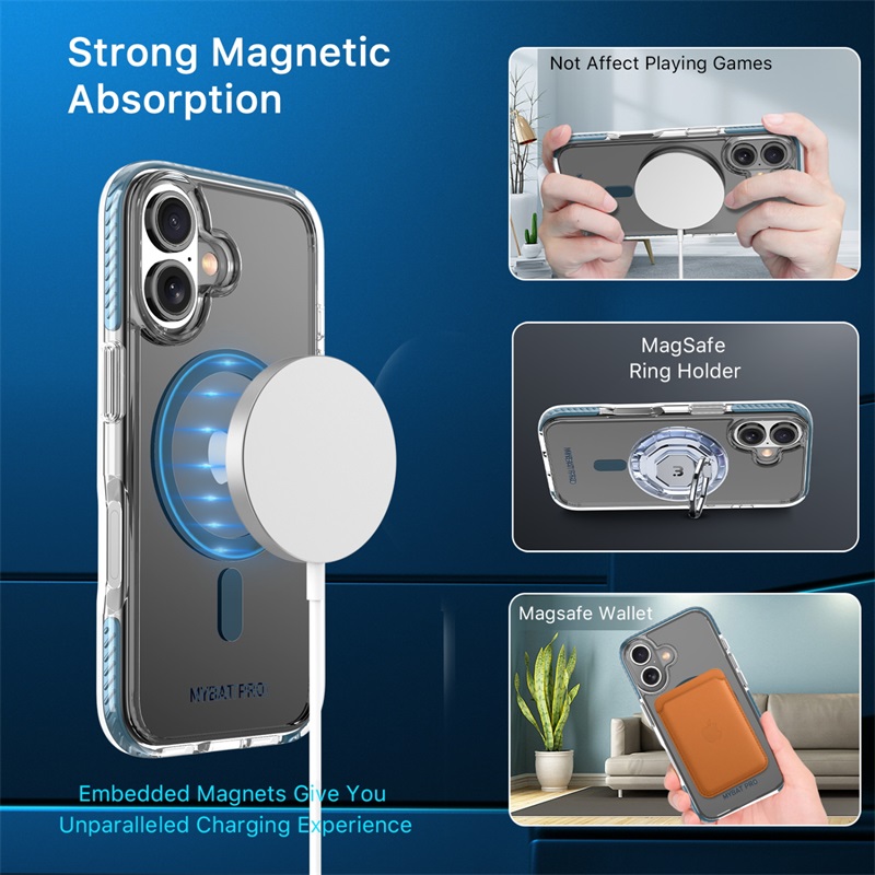 Vivid Series MagSafe Case for iPhone 16 amplifies clarity and vibrance and all around protection. This crystal-clear case, adorned with meticulously designed black textured non-slip bumpers, seamlessly combines style with practicality. The +AttachMe ring in silver facilitates rapid attachment to MagSafe chargers and mounts, ensuring effortless functionality. Certified military-grade protection envelops your customer’s iPhone 16, guarding it against scratches, bumps, and drops while allowing its vivid allure to shine through. Elevate your product offering with the Vivid Series MagSafe Case, where protection meets sheer elegance. MyBat Pro proudly supports the Vivid Series MagSafe Case with a limited lifetime warranty, underscoring our commitment to the highest quality, performance, and customer satisfaction. Features: MagSafe Compatible +AttachMe Magnetic Ring Alignment Military-Grade Drop Protection Shock & Impact Resistant Raised Bezel Edges & Camera Ring Crystal-Clear Design Textured Non-Slip Bumpers Easy Access: Ports & Buttons Quick Installation & Removal Lifetime Warranty