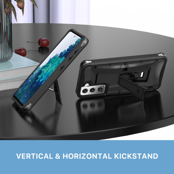 Offer your customers the highest-ranked protector for their Samsung Galaxy S21 with the Warrior Series Case from MyBat Pro! It is available in attractive packaging that makes it stand out on the shelf and shows off the product beautifully, making it an ideal addition to your inventory. The Warrior Series Case gives your customers Galaxy S21 the fiercest line of defense against drops, falls, and scratches! This dual-layer, certified military-grade case features a rugged black polycarbonate outer shell and padded TPU interior shell, providing up to 2X the protection and durability of standard cases. The Warrior Series Case features shock-absorbing corners, raised bezel edges, and texturized ridges to ensure additional safety while compact for easy access to all buttons and ports. Using the 360° rotating holster clip, customers can clip the case to their pockets and go anywhere, or they can set down their Galaxy S21 and use the integrated kickstand for hands-free viewing. Customers will also experience diamond-level coverage with the included high-grade tempered glass screen protector, boasting a 9H hardness keeping their Galaxy S21 screen safe and pristine! MyBat Pro offers an extended lifetime warranty for the Warrior Series Case For Galaxy S21, ensuring the best quality, performance, and customer satisfaction. Features: Dual-Layered Shell Case Certified Military Grade Superior Durability Impact & Shock Protection Raised Bezel Edges Non-Slip Bumper Grip Easy Access: Ports, Buttons & Cards Premium Materials Integrated Kickstand Quick Installation & Removal 360° Rotating Holster Clip Includes 9H HD Tempered Glass Lifetime Warranty