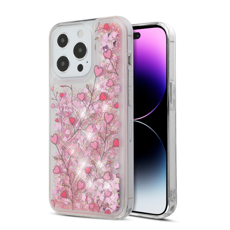 MyBat Quicksand Glitter Hybrid Protector Cover for Apple iPhone 14 Pro Max (6.7) - Heart Vines