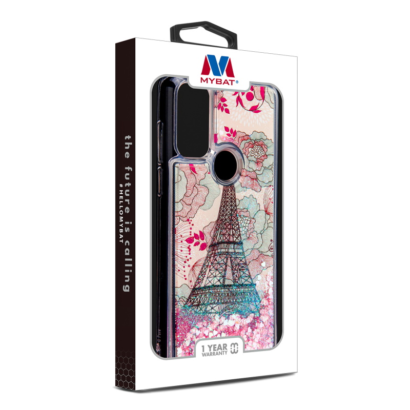 MyBat Quicksand Glitter Hybrid Protector Cover for Motorola Moto G Pure / Moto G Power (2022) - Eiffel Tower & Pink Hearts