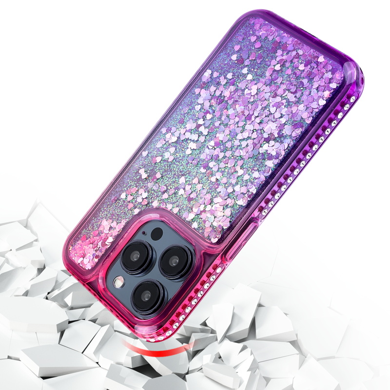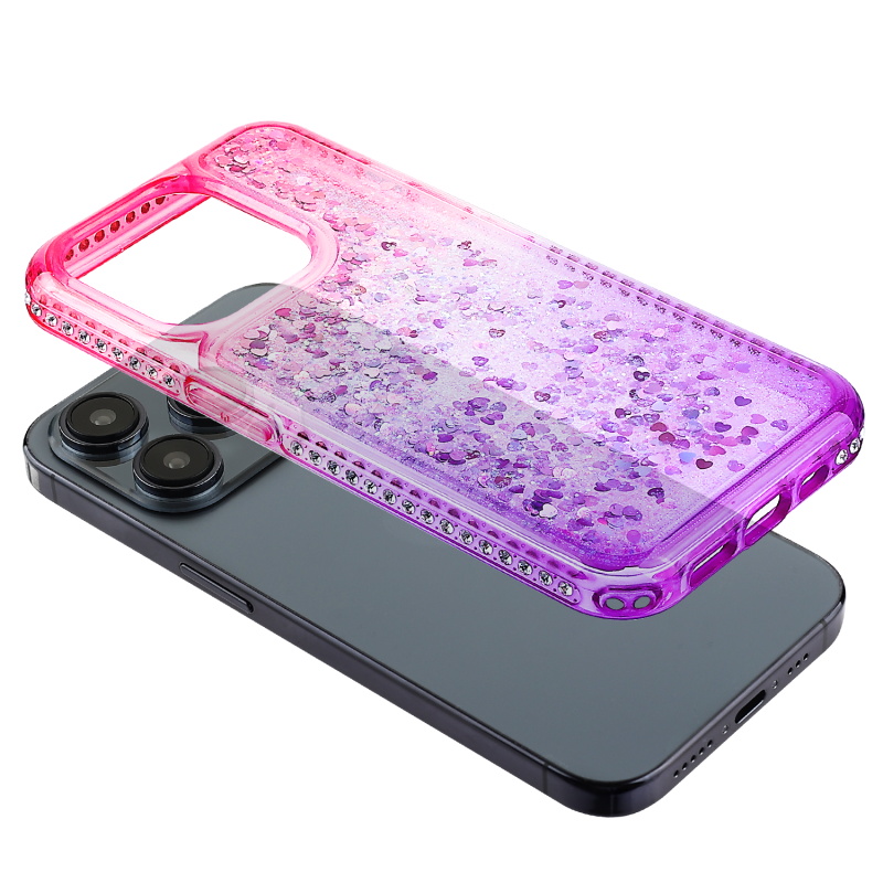 MyBat Quicksand Glitter with Diamonds Protector Cover for Apple iPhone 15 Pro Max (6.7) - Purple / Pink Gradient