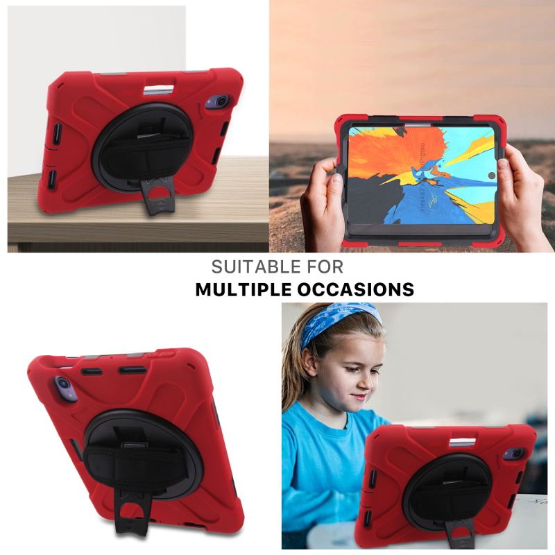 Heavy Duty Protection: Made of one layer premium shock-absorbing Silicone and two-layer hard PC; Provide protection against accidental drops, bumps, and shocks in daily use.360° Rotating Foldable Kickstand: Easy to open and close the stand; Provide multiple standing positions when viewing or typing.(Pen slot on the back of the case)360°Rotatable Adjustable Hand Strap: Adjustable length to adapt your hands, Easy to handle with one hand while lying down or get out.Shock &Drop Resistant: 4 Corners Shock Absorption & Anti-fall Protection.