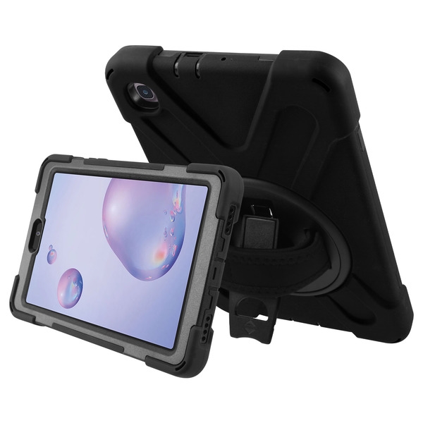 MyBat Rotatable Stand Protector Cover (with Wristband) for Samsung T307 (Galaxy Tab A 8.4 (2020)) - Black / Black