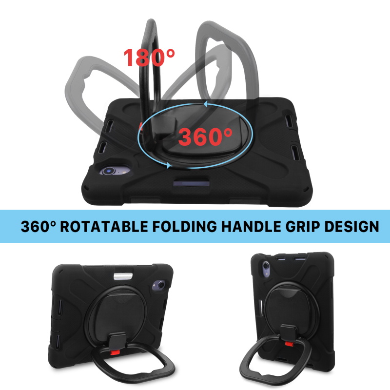MyBat Rotatable Stand Shockproof Protector Cover for Apple iPad mini 6 (2021) / iPad mini 7 (2024) - Black / Black
