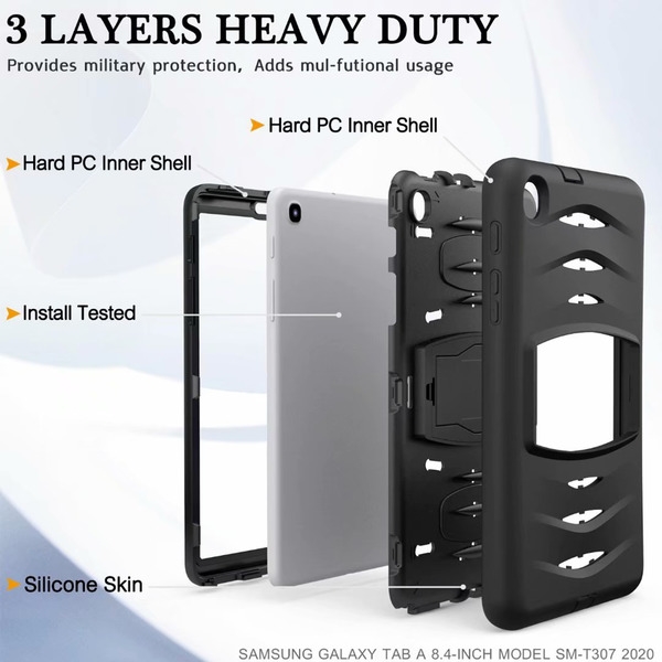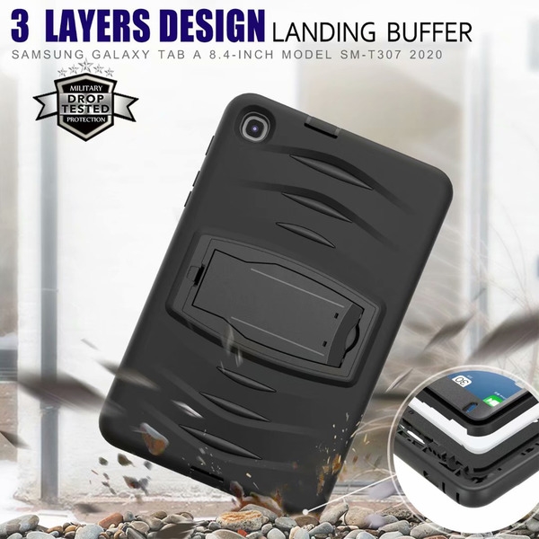 MyBat Shock Wave Heavy Duty Rugged Protector Cover (with Stand) for Samsung T307 (Galaxy Tab A 8.4 (2020)) - Black / Black