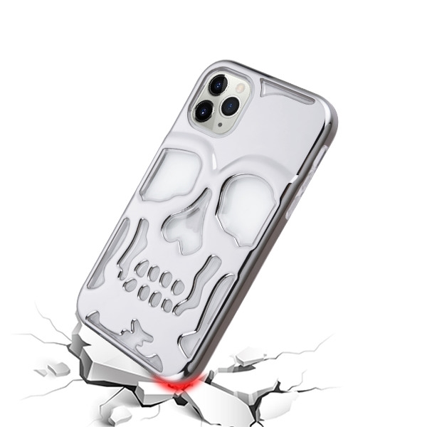 MyBat SKULLCAP Lucid Hybrid Protector Cover [Military-Grade Certified] for Apple iPhone 11 Pro - Silver Plating / Transparent Clear