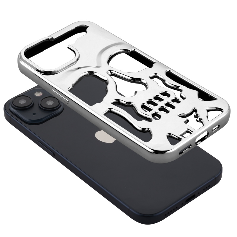 MyBat Skullcap Protector Cover for Apple iPhone 15 (6.1) - Silver Plating