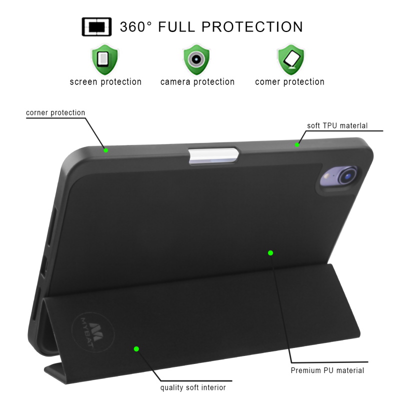 MyBat Slim Fit Smart MyJacket with Trifold Stand for Apple iPad mini 6 (2021) / iPad mini 7 (2024) - Black