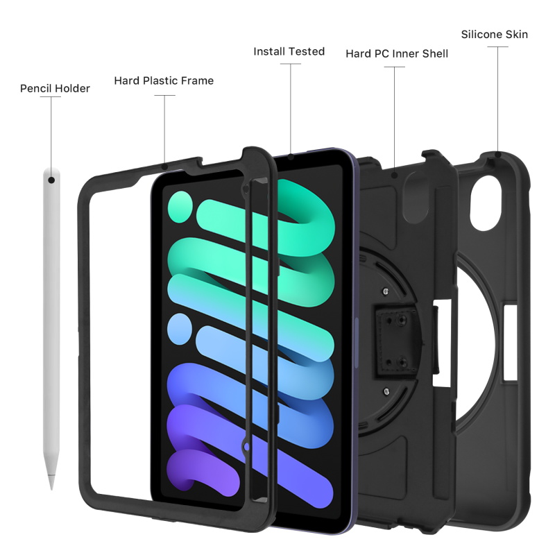 MyBat Spider Drop Resistant Protector Cover (with Rotating Stand) for Apple iPad mini 6 (2021) / iPad mini 7 (2024) - Black / Black
