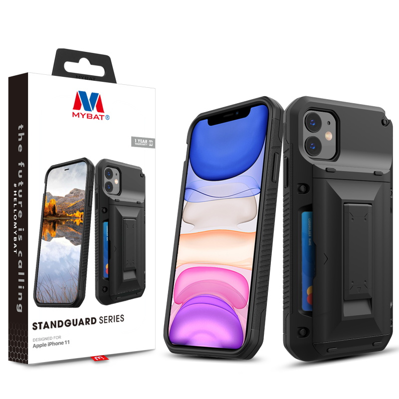 MyBat StandGuard Series Case w/ Kickstand, Card Slot for Apple iPhone 11 - Black