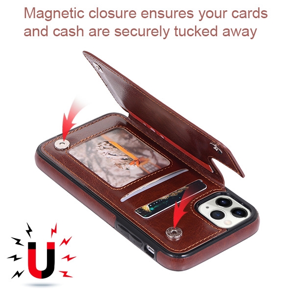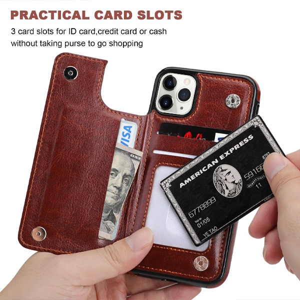Premium faux leather wallet case with hidden storage for cash and 2 cards. Shock-absorbing TPU snap-on case cushions the phone from impact and drops Extended slots to conveniently store cards, ID, and cash without the added bulk Convenient ID window makes ID checks hassle free Double magnetic closures ensure your cards and cash are securely tucked away Flap cover transforms into a kickstand for better viewing experience Precise cutouts for camera, buttons and speakers