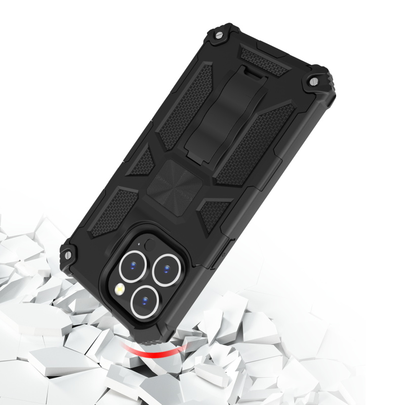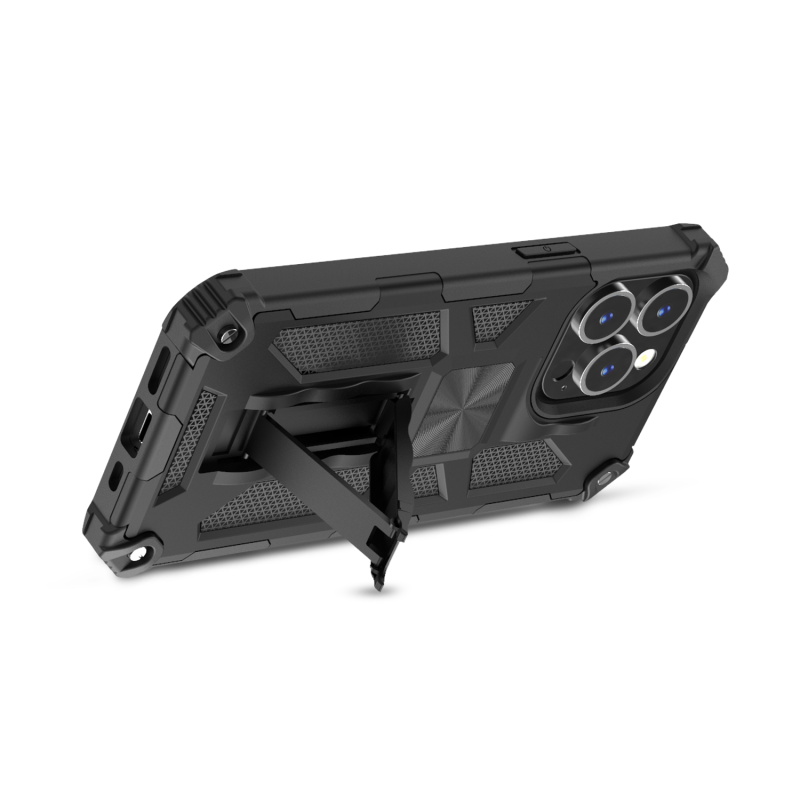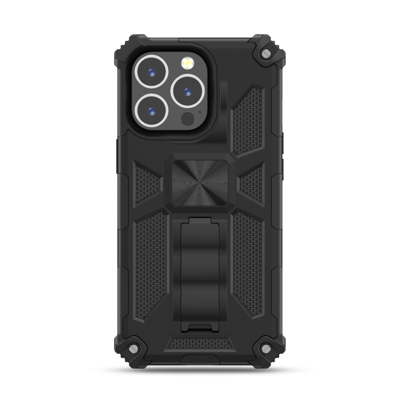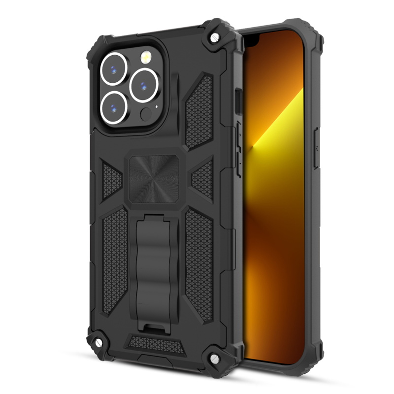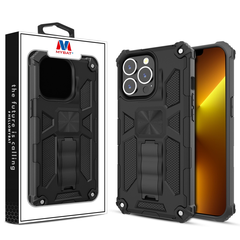 MyBat Sturdy Hybrid Protector Cover (with Stand) for Apple iPhone 13 Pro (6.1) - Black / Black