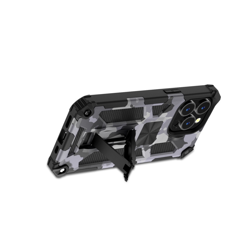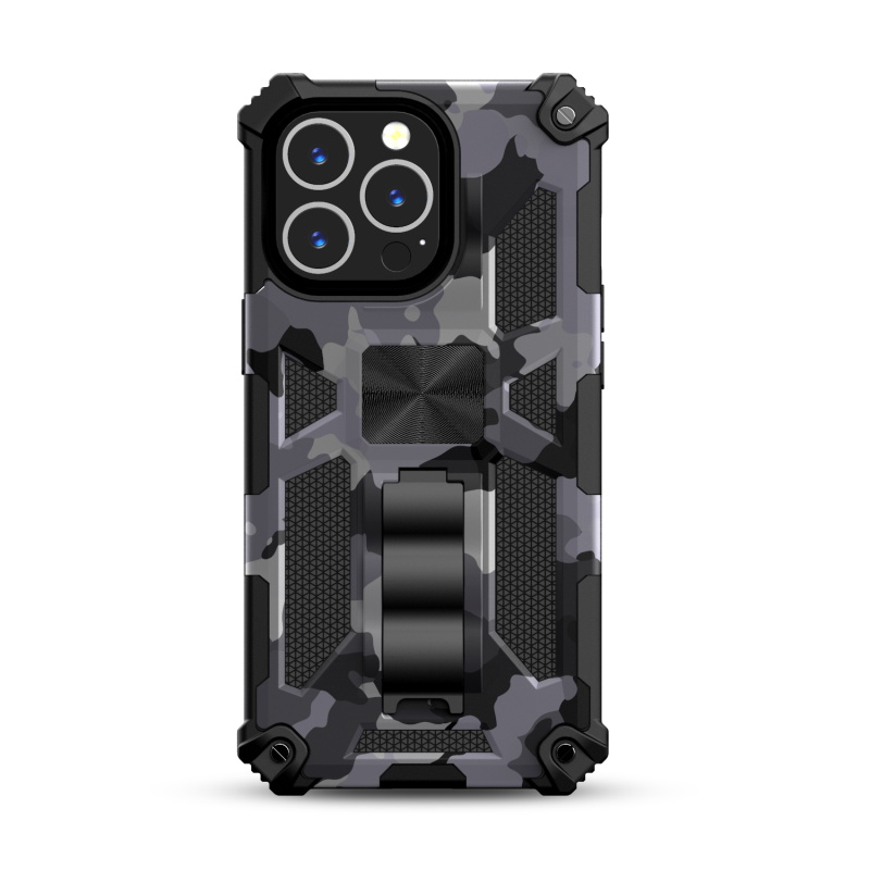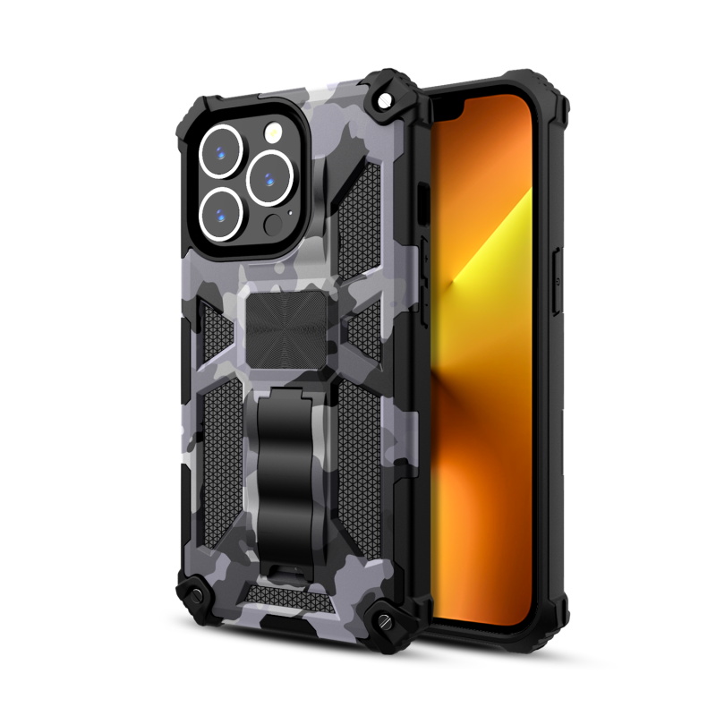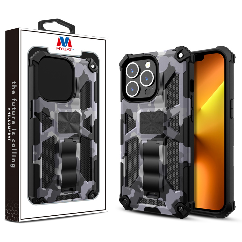 MyBat Sturdy Hybrid Protector Cover (with Stand) for Apple iPhone 13 Pro (6.1) - Gray Camouflage / Black