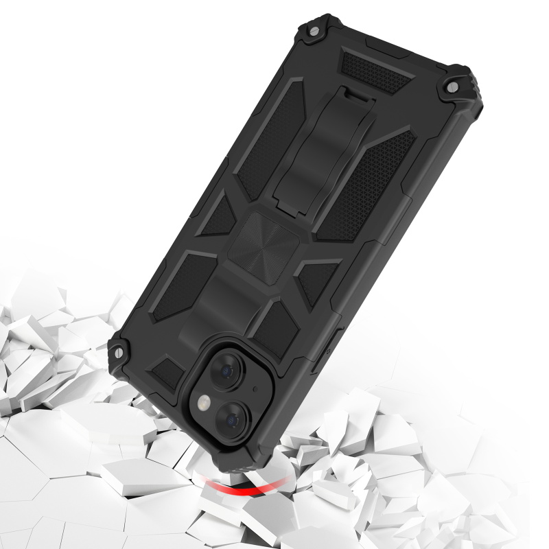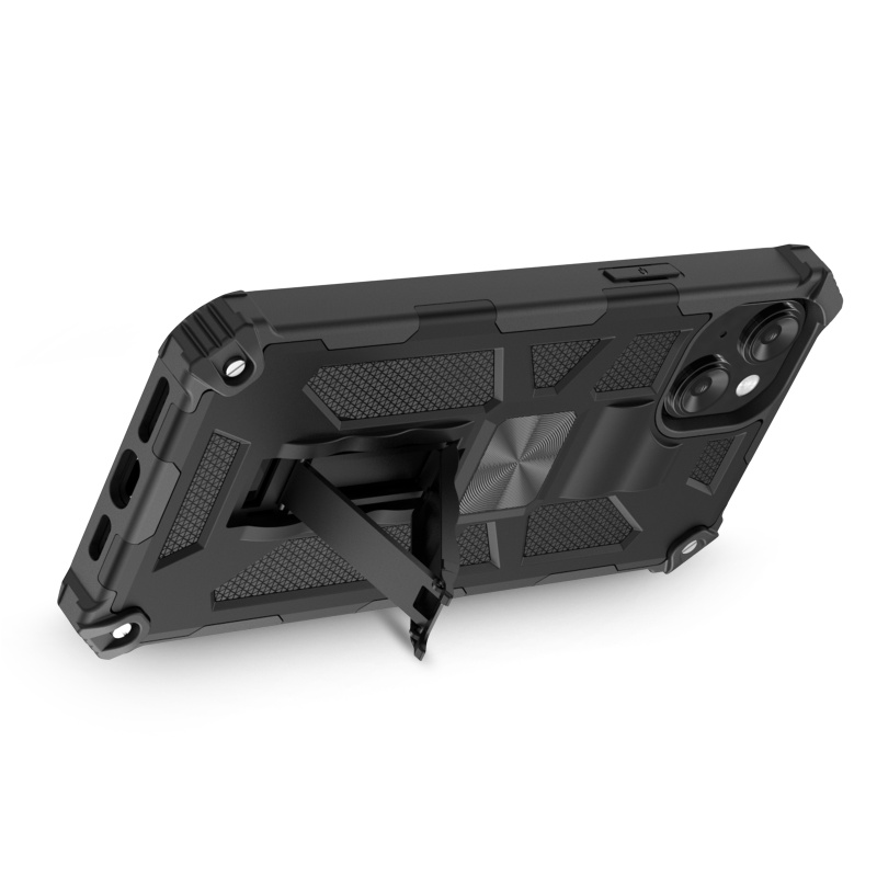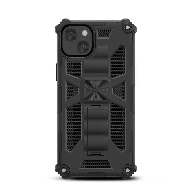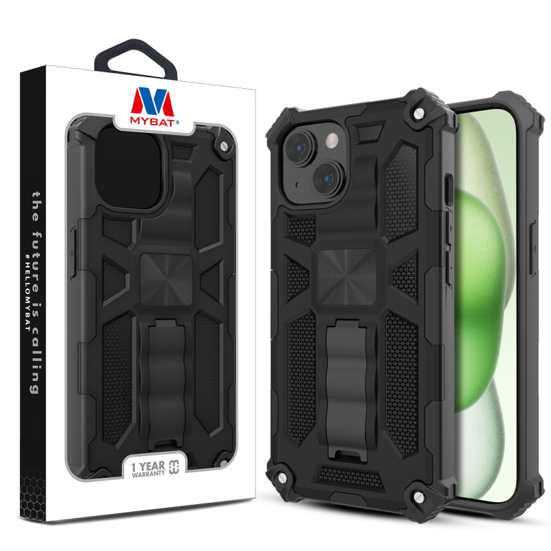 MyBat Sturdy Hybrid Protector Cover (with Stand) for Apple iPhone 15 Plus (6.7) - Black / Black