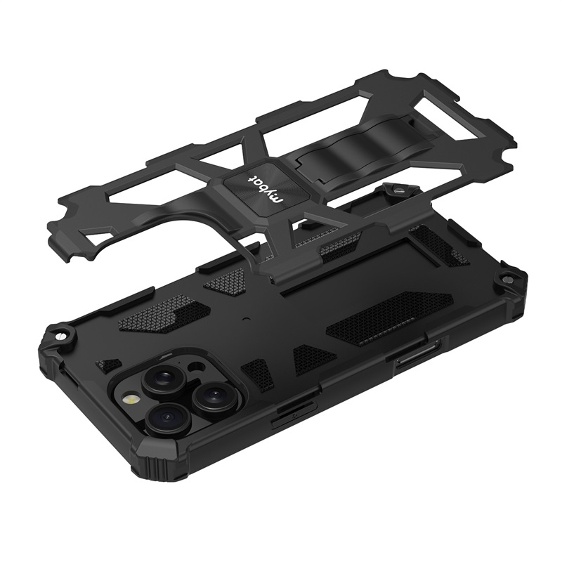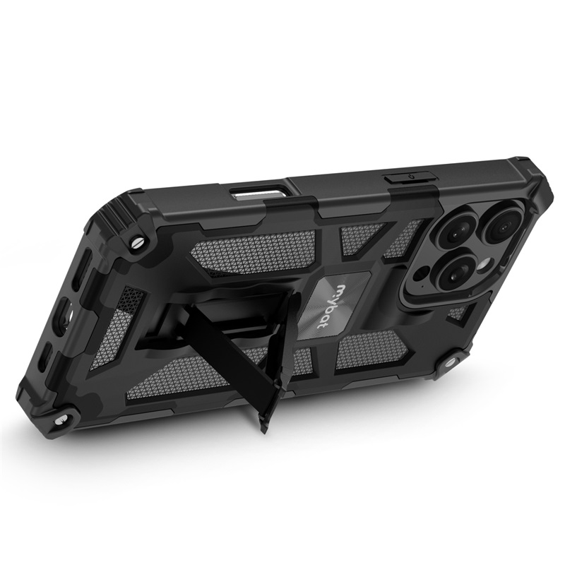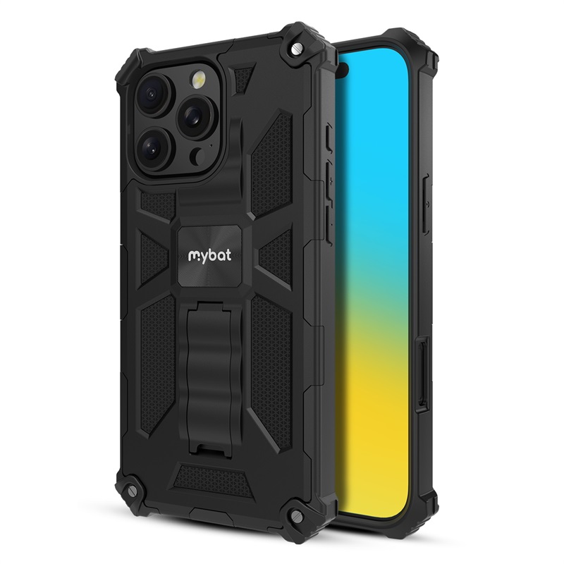 MyBat Sturdy Hybrid Protector Cover (with Stand) for Apple iPhone 16 Pro Max - Black / Black