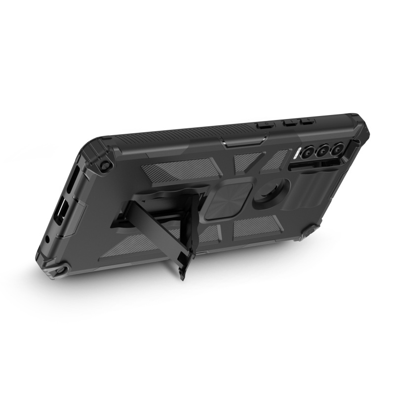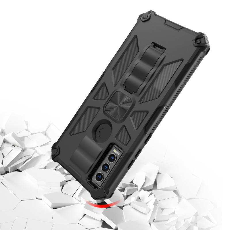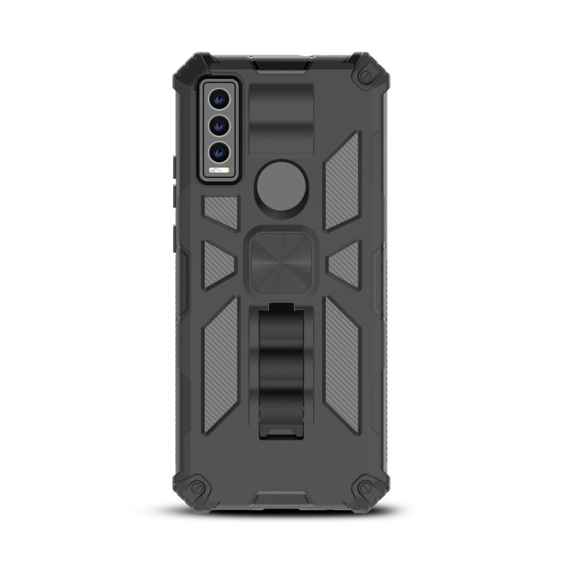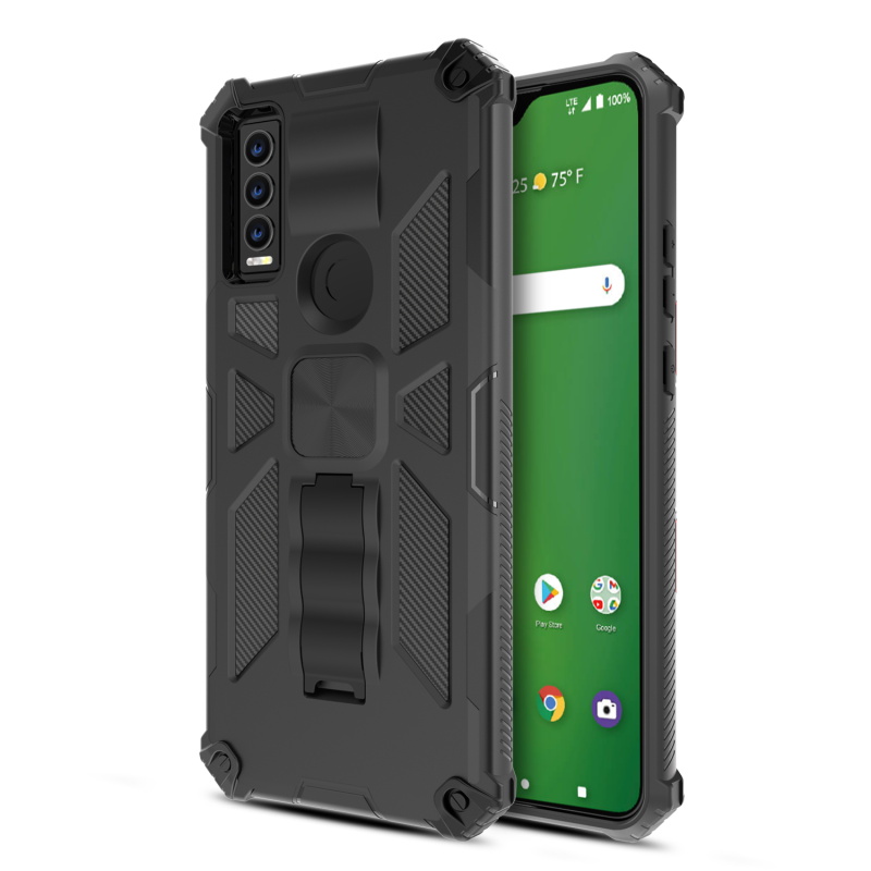 MyBat Sturdy Hybrid Protector Cover (with Stand) for Cricket Ovation 3 / At&t Motivate Max - Black / Black