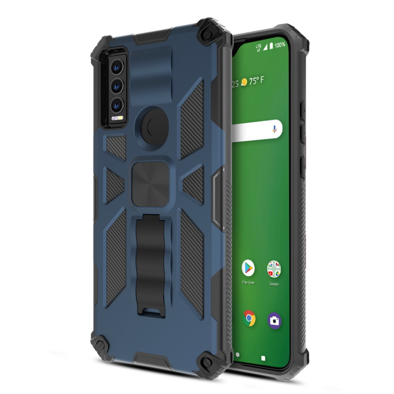 MyBat Sturdy Hybrid Protector Cover (with Stand) for Cricket Ovation 3 / At&t Motivate Max - Ink Blue / Black