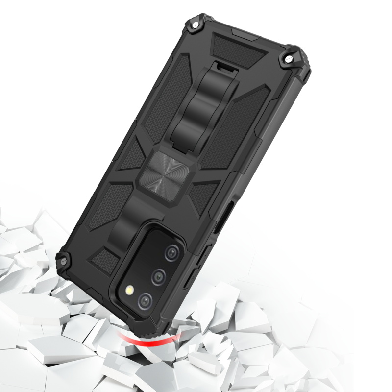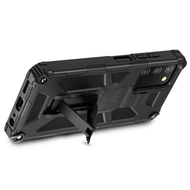 MyBat Sturdy Hybrid Protector Cover (with Stand) for Samsung Galaxy A037U / Galaxy A03s - Black / Black
