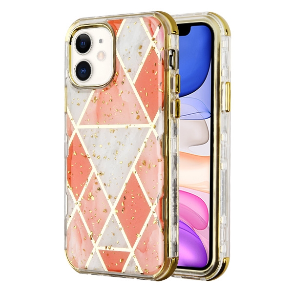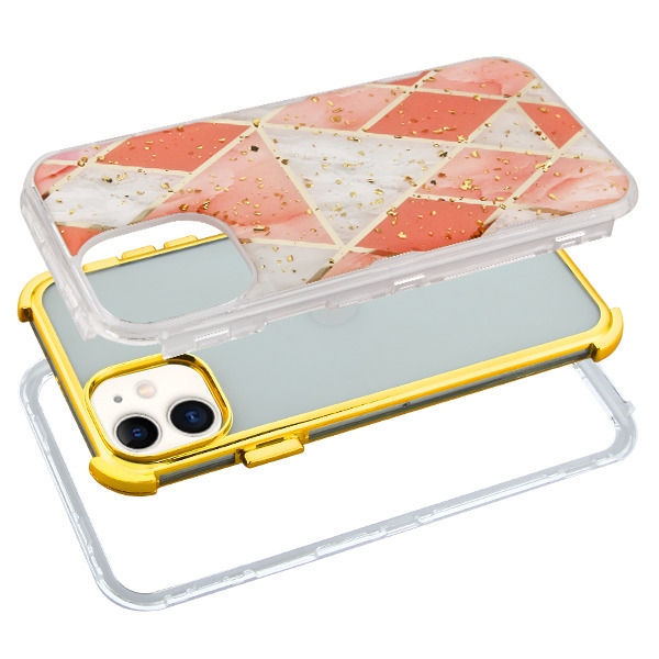 MyBat TUFF Kleer Hybrid Case for Apple iPhone 11 - Electroplated Pink Marble / Electroplating Gold