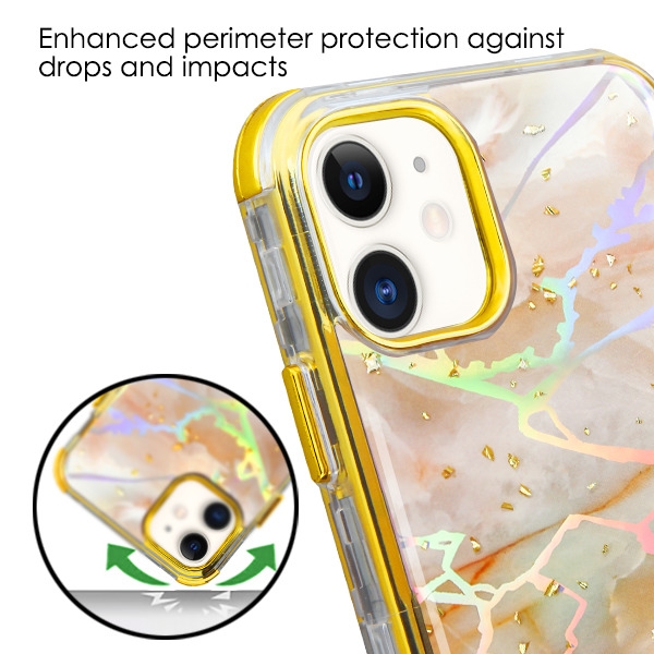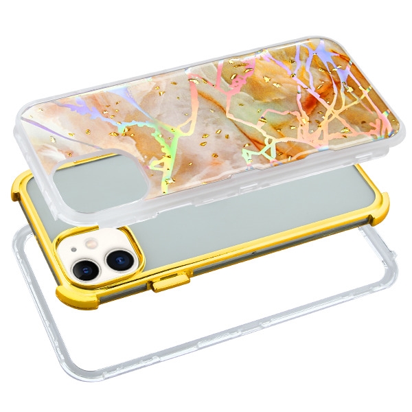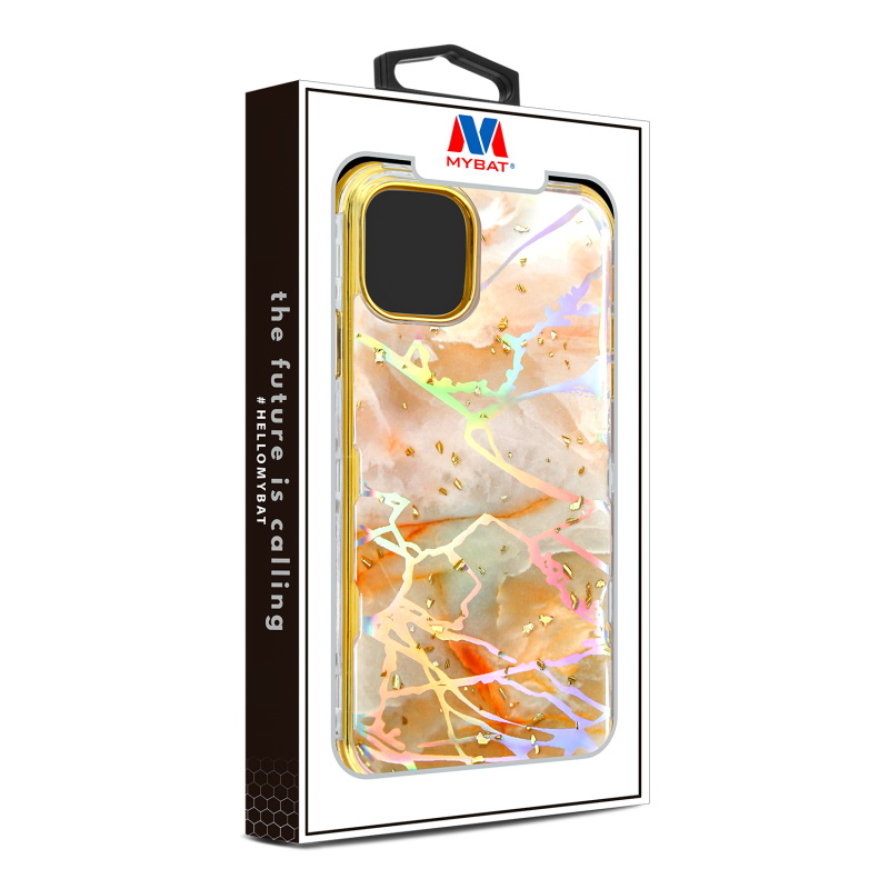 MyBat TUFF Kleer Hybrid Case for Apple iPhone 11 - Pale Yellow Marbling / Electroplating Gold