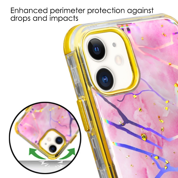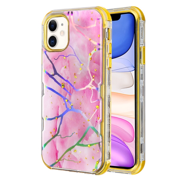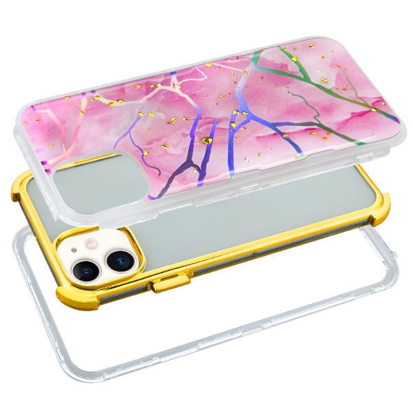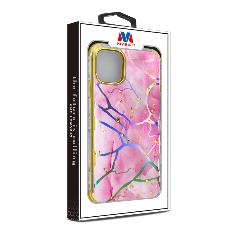 MyBat TUFF Kleer Hybrid Case for Apple iPhone 11 - Pink Marbling / Electroplating Gold
