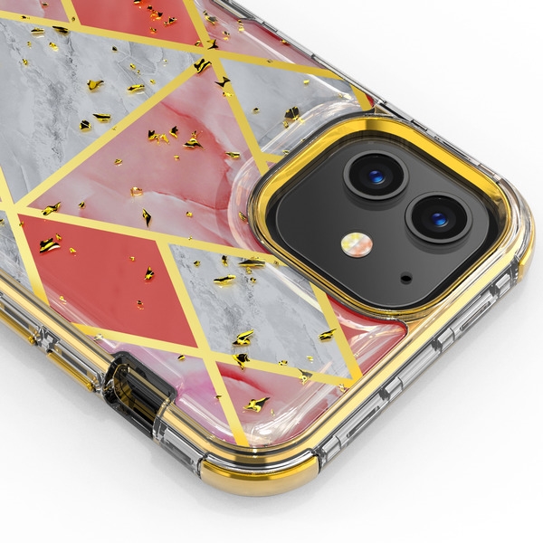 MyBat TUFF Kleer Hybrid Case for Apple iPhone 12 mini (5.4) - Electroplated Pink Marble / Electroplating Gold