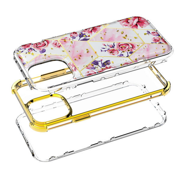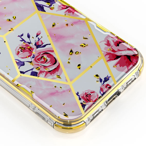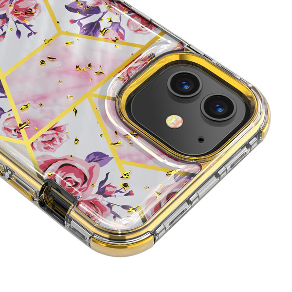 MyBat TUFF Kleer Hybrid Case for Apple iPhone 12 mini (5.4) - Electroplated Roses Marble / Electroplating Gold