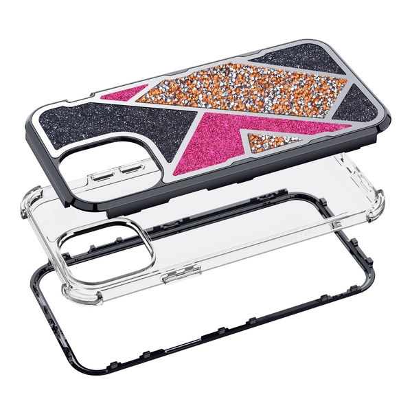 Sleek dual-layers hybrid case made of TPU bumper and PC back Impact-absorbing perimeter and air cushion corners guard the device against bumps and drops Precise openings for full access to all your phone’s ports and buttons. User friendly design to provide ease of installation and removal. Tightly packed encrusted rhinestones express the glamorous sparkling shine of the decorative design. Electroplated outer shell design brings out the stylish encrusted rhinestones.