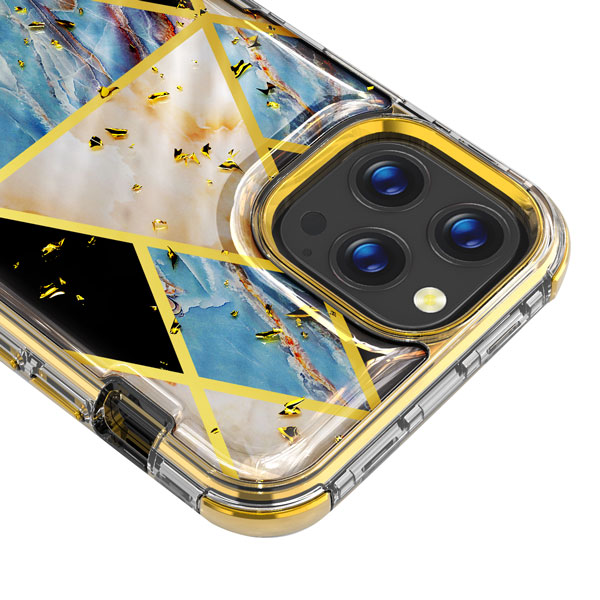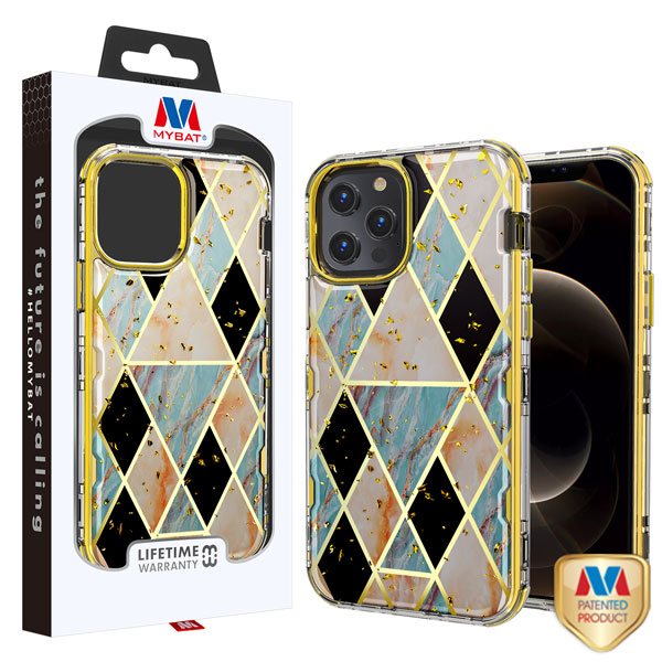 MyBat TUFF Kleer Hybrid Case for Apple iPhone 12 Pro Max (6.7) - Electroplated Blue Marble / Electroplating Gold